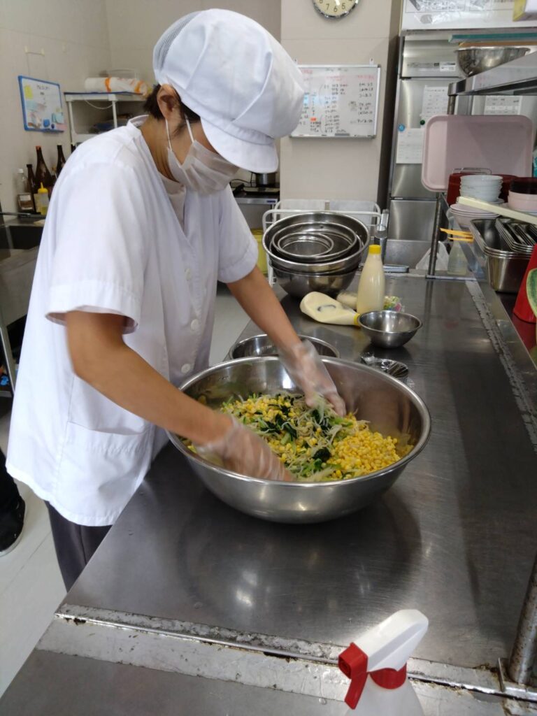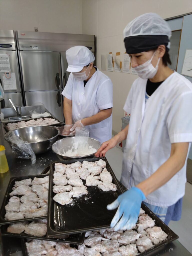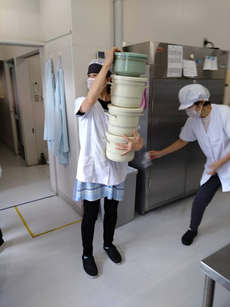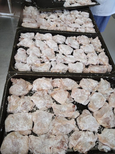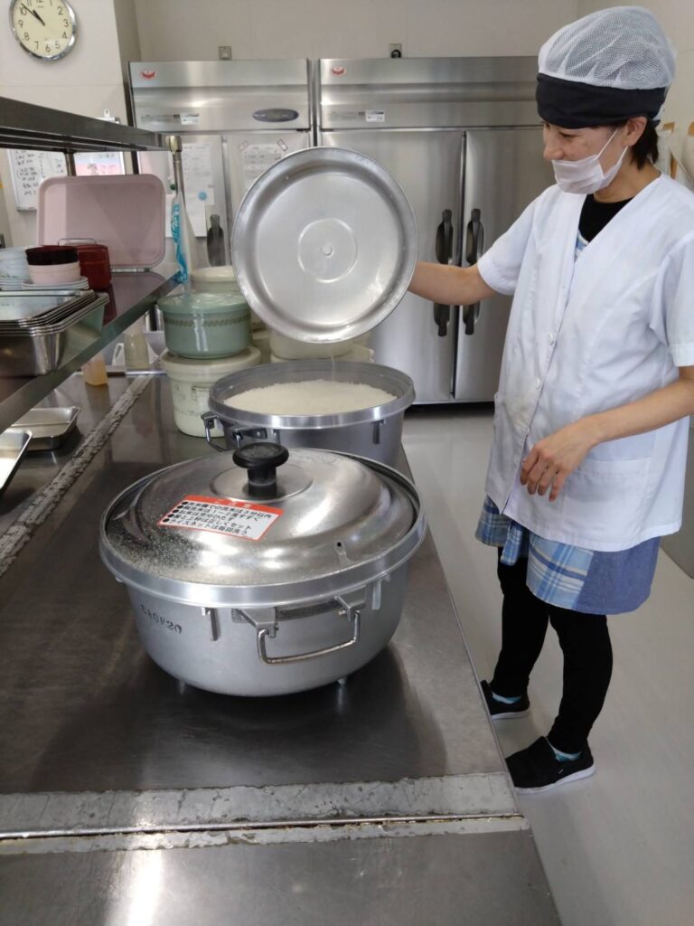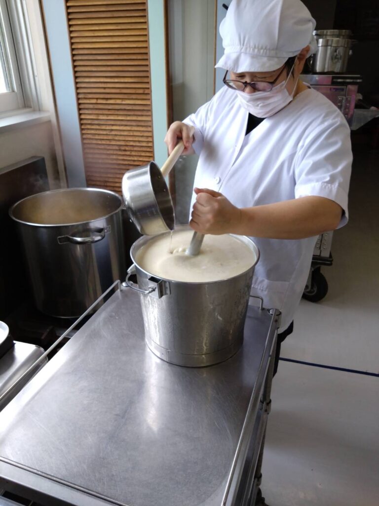 給食の先生たちに「スムーズな連携ですね」というと、「いつもの事だから☻」とニッコリ。余裕ですね。