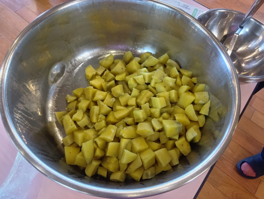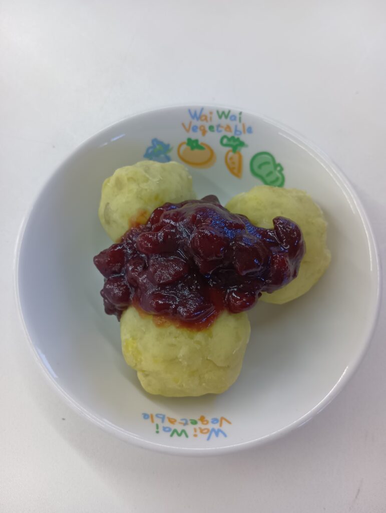 ふかしたさつま芋を潰して丸めてお月様の出来上がり。