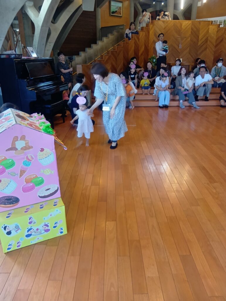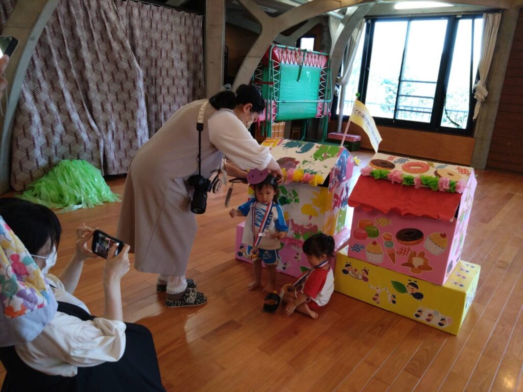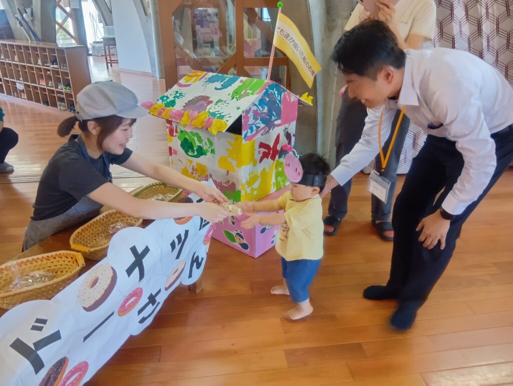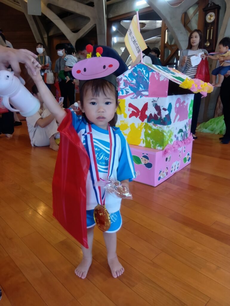 「リレーしようよ!」 » « 避難訓練 つぼみ・うめ組運動会 [ 2025-10-17 ] 今日のつぼみ・うめ組(0・1歳児)さんの運動会の様子をお伝えします。 お家の方が見て下さる中、さくらんぼリズム・体操・かけっこを頑張りました。 よーいドンの合図に元気に走り出すお友達、立ちすくんでじっとするお友達等などいろんな姿が見られました。 最後は『おつかいありさん』になって、お家の方と一緒にお菓子の家にボールを入れ坂道を登りシャラシャラの草を越えドーナツを買いに行きました。 ドーナツ屋さんになった先生がくれたドーナツは本物でした! 金メダルとお土産をもらってみんな嬉しそう☻ 帰る前に、お菓子のお家の前で記念写真。「はい チーズ!」 お父さん、お母さん、おばあちゃんのお顔が見えて涙が出たお友達もいましたが、それもいい思い出ですね。 泣いても笑ってもかわいいつぼみ・うめ組さんでした。 「リレーしようよ!」 » « 避難訓練