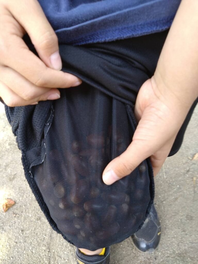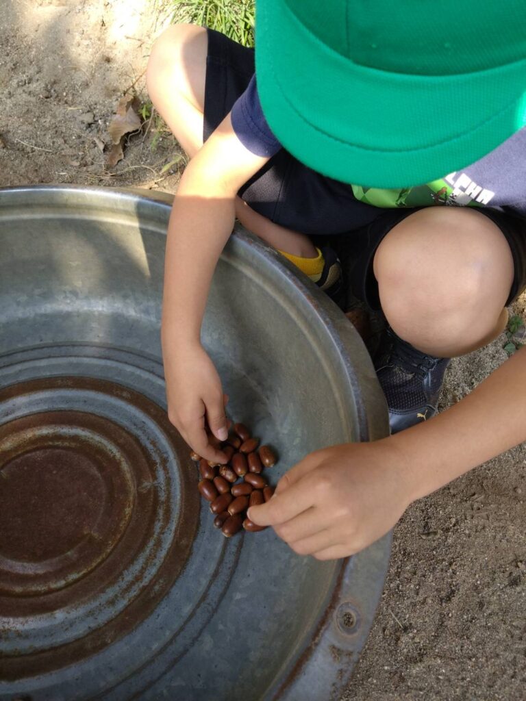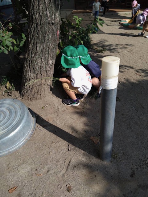 「他のお友達の分も少し残しておいてほしいな、、、」その言葉を描けるかどうか迷いましたが、あまりにも夢中になって拾う姿にそっと見守ることにしました。