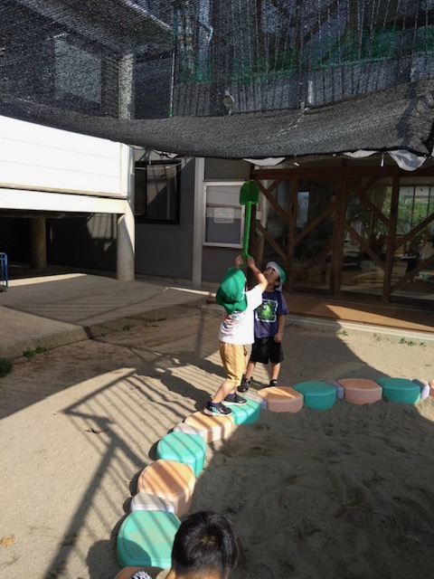 「ちょっと待っとって!」とR君が持ってきたのは砂場用のスコップ。