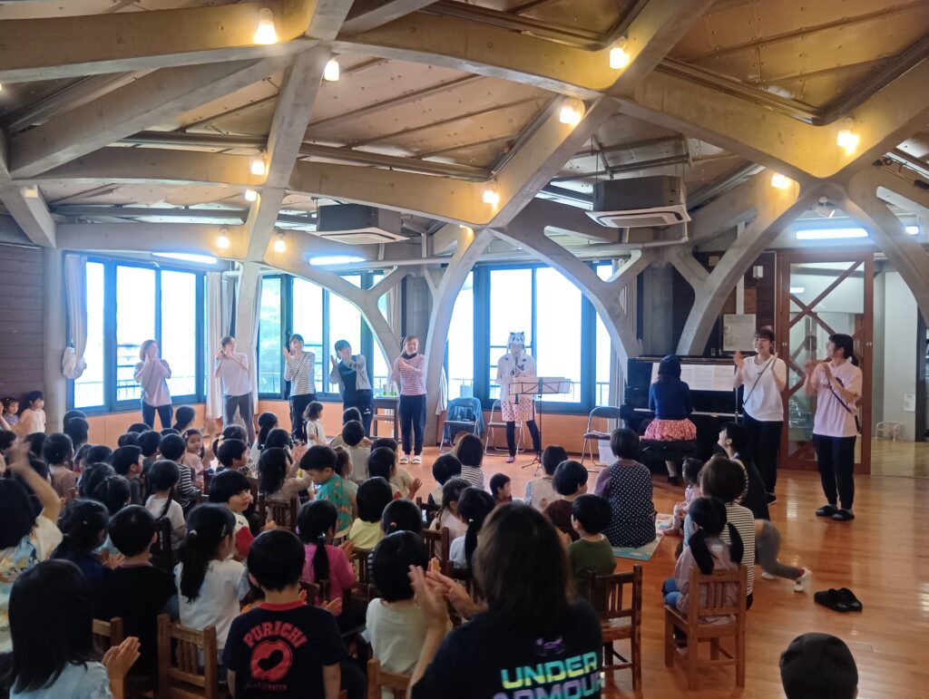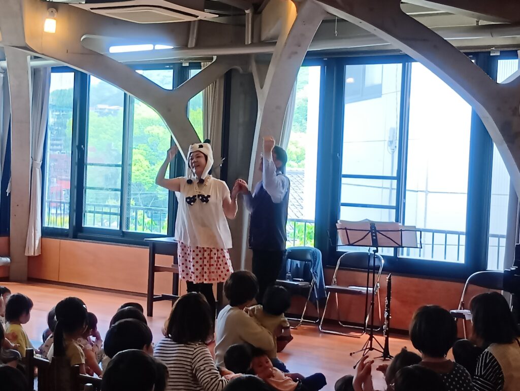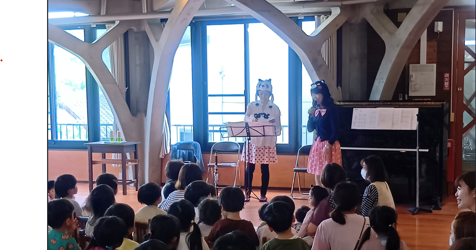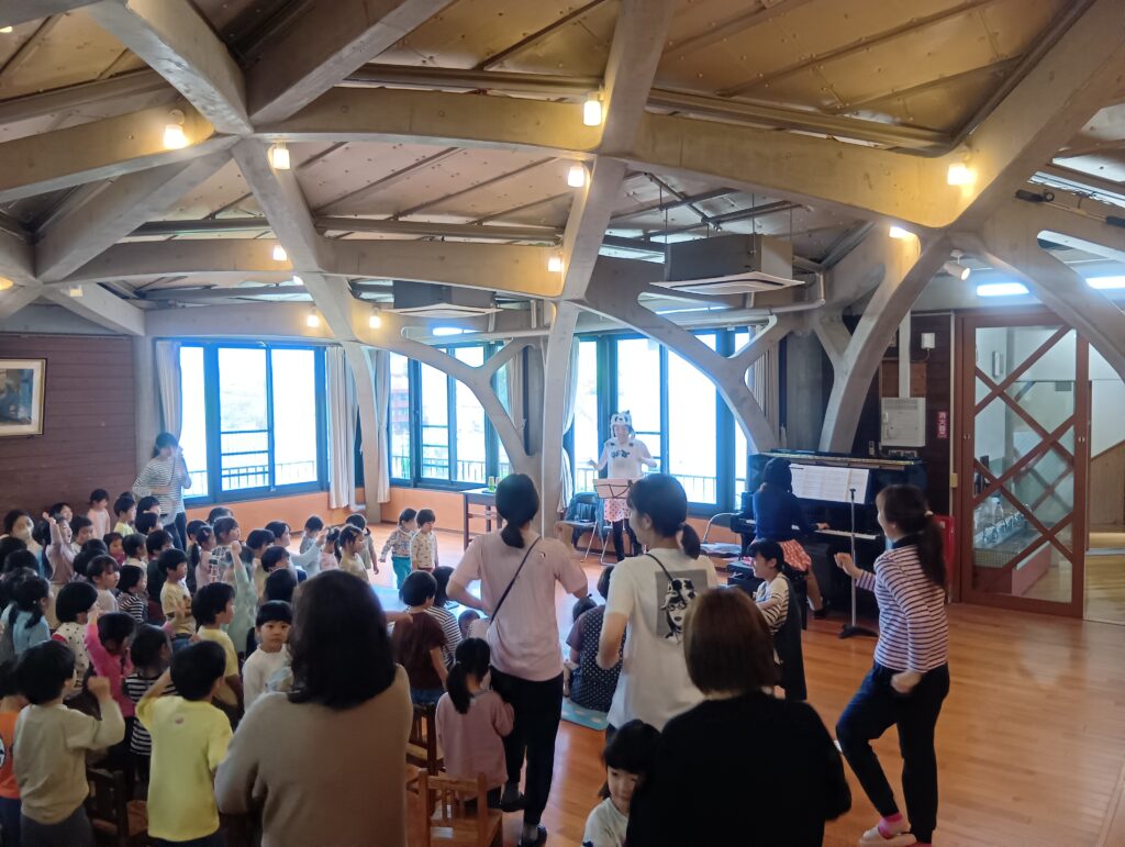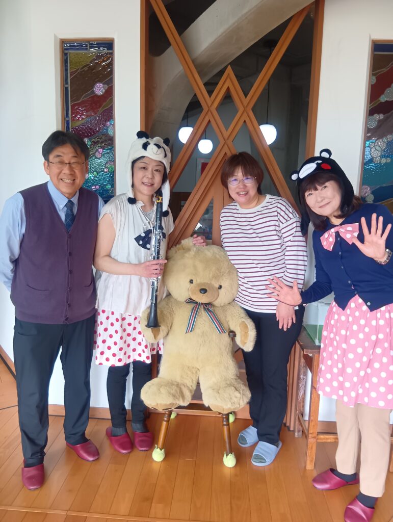 « イースター🐣 コンサート [ 2026-04-20 ] 今日は〝こどものこころクラリネットコンサート〟があり、広島からクラリネット演奏者の〝藤岡 恵理子〟さんと、ピアノ・オルガン演奏者の〝吉田 仁美〟さんが来てくださいました。 ワルツの曲に合わせてパンダの被り物をした藤岡さんとT牧師先生が気持ちよさそうに踊る姿を見せて下さいました。 その後はマンボーの曲に合わせて子どもと職員も踊ってみました!H先生が一番ノリノリでしたよ♪ 1月から12月まで1年を通した歌に、子どもたちが知っているトトロやドラえもんの歌は大きな声でうたっていました!アンコールまであり、20曲程演奏してくださいました。 最後はジャンボリミッキーをみんなで踊って楽しい時間を過ごすことが出来ました。 子どもたちに素敵な音楽のプレゼントありがとうございました♪ « イースター🐣